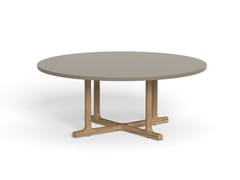 Tavolino da giardino rotondo in teak e vetroresina