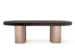 Tavolino rotondo in Solid Surface con base in marmo Carrara