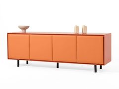 Madia in MDF e pelle con ante a battente e cassetti