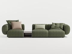 Letto imbottito matrimoniale in tessuto con comodini integrati