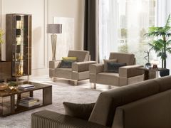 Poltrona in tessuto con braccioli