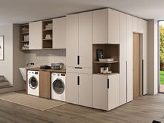Mobile lavabo sospeso in legno e gres con lavabo integrato