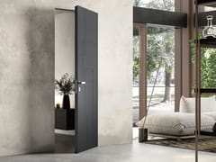 Porta a filo muro a battente pantografata in legno