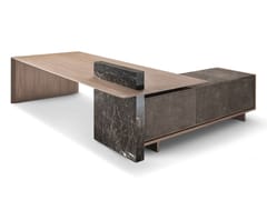 Scrivania direzionale ad angolo in legno e marmo