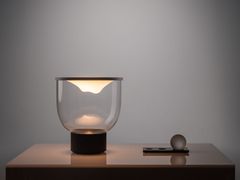 Lampada da tavolo in acciaio inox con paralume in metacrilato