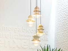 Lampada a sospensione a LED in vetro soffiato e tessuto