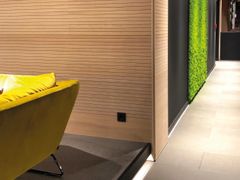 Rivestimento fonoassorbente con pannelli o doghe da parete o soffitto con fresature a vista