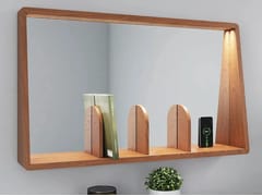 Specchio bagno in legno da parete con illuminazione integrata con mensola