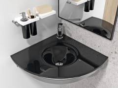 Lavabo ad angolo sospeso in vetro termoformato con piano