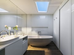 Lucernario architettonico con effetto sole soffuso e cielo nitido