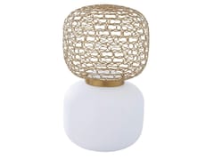 Vaso con base in opalino e rete di ottone