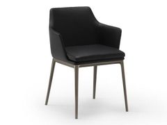 Sedia imbottita in pelle con braccioli