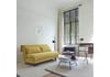 Sgabello alto in tessuto con poggiapiedi con schienale