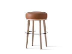 Sgabello alto in legno con seduta imbottita