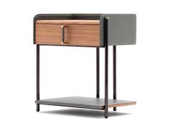 Comodino rettangolare in legno e pelle con cassetti